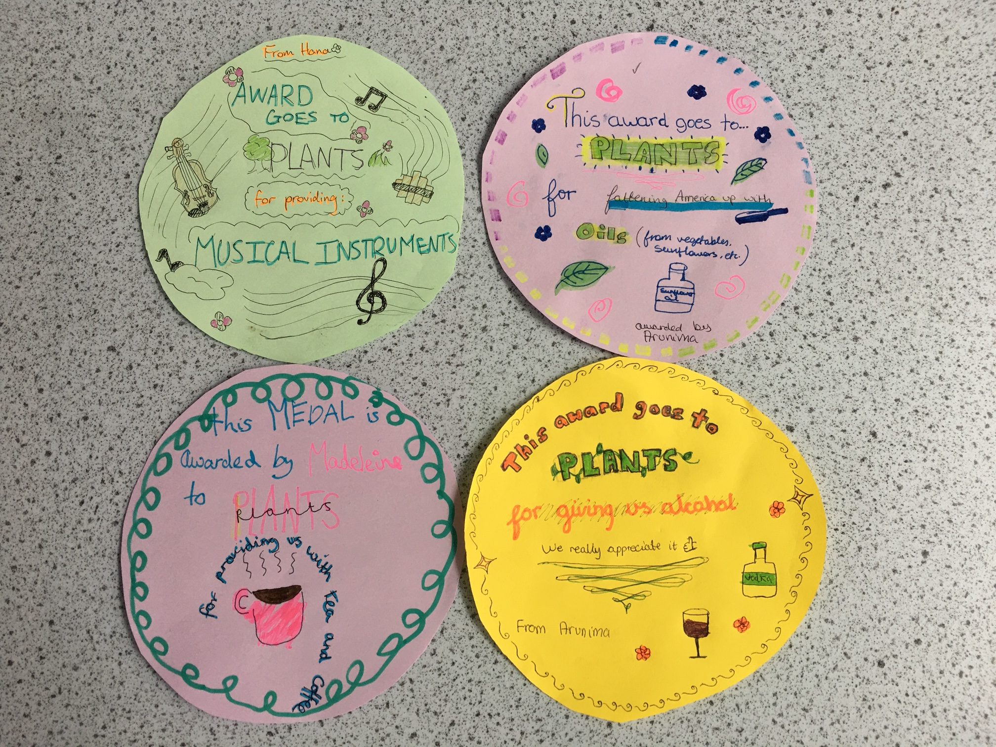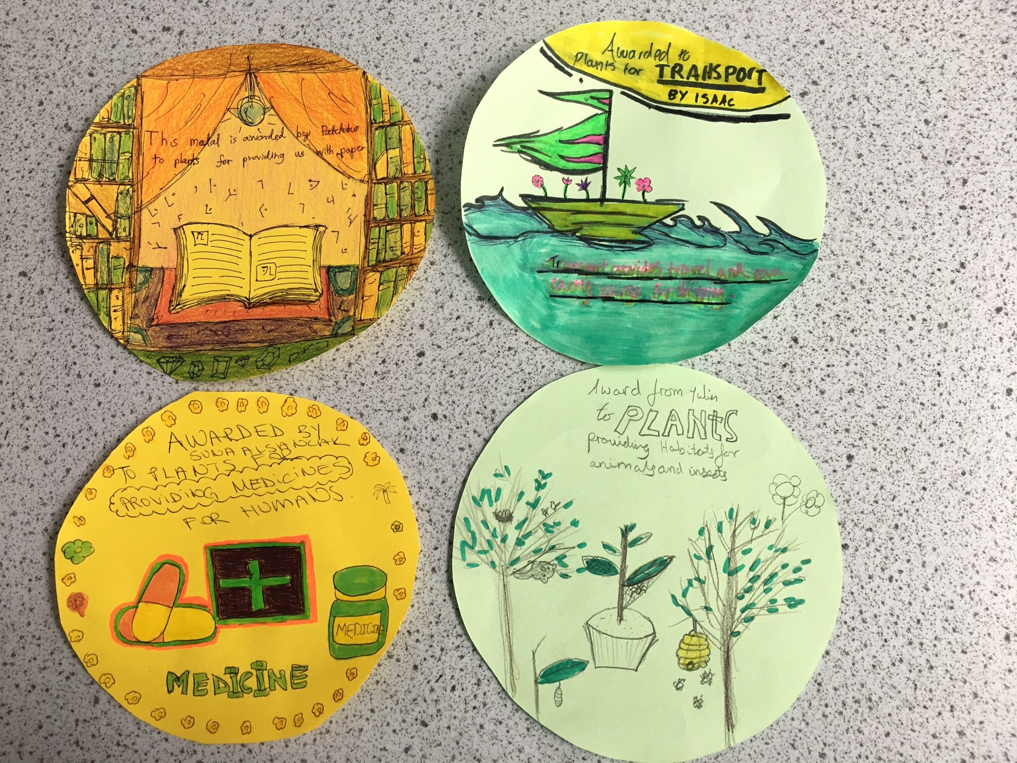 As part of this exploration into the amazing world of flora, the Year 8 topic group decided to award plants medals for their significance and importance. The awards ranged from providing our world with oxygen, food and medicine to the means to produce clothing, furniture and musical instruments (naturally!), as well as recognising their essential role in decorating, populating and sustaining the world in which we live. The awards, designed by Purcell students, can be seen below.