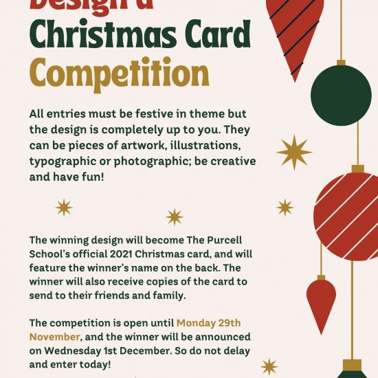 The winning design will become The Purcell School’s official 2021 Christmas card, and will feature the winner’s name on the back. The winner will also receive copies of the card to send to their friends and family.